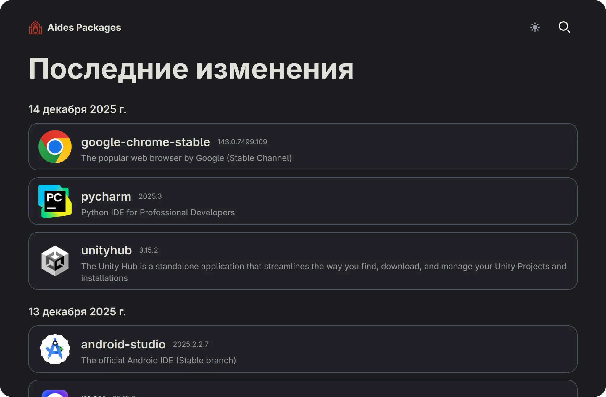 - добавлена страница мейнтейнера, где отображаются его пакеты. Также можно указать ссылки на Telegram, GitHub и донаты.