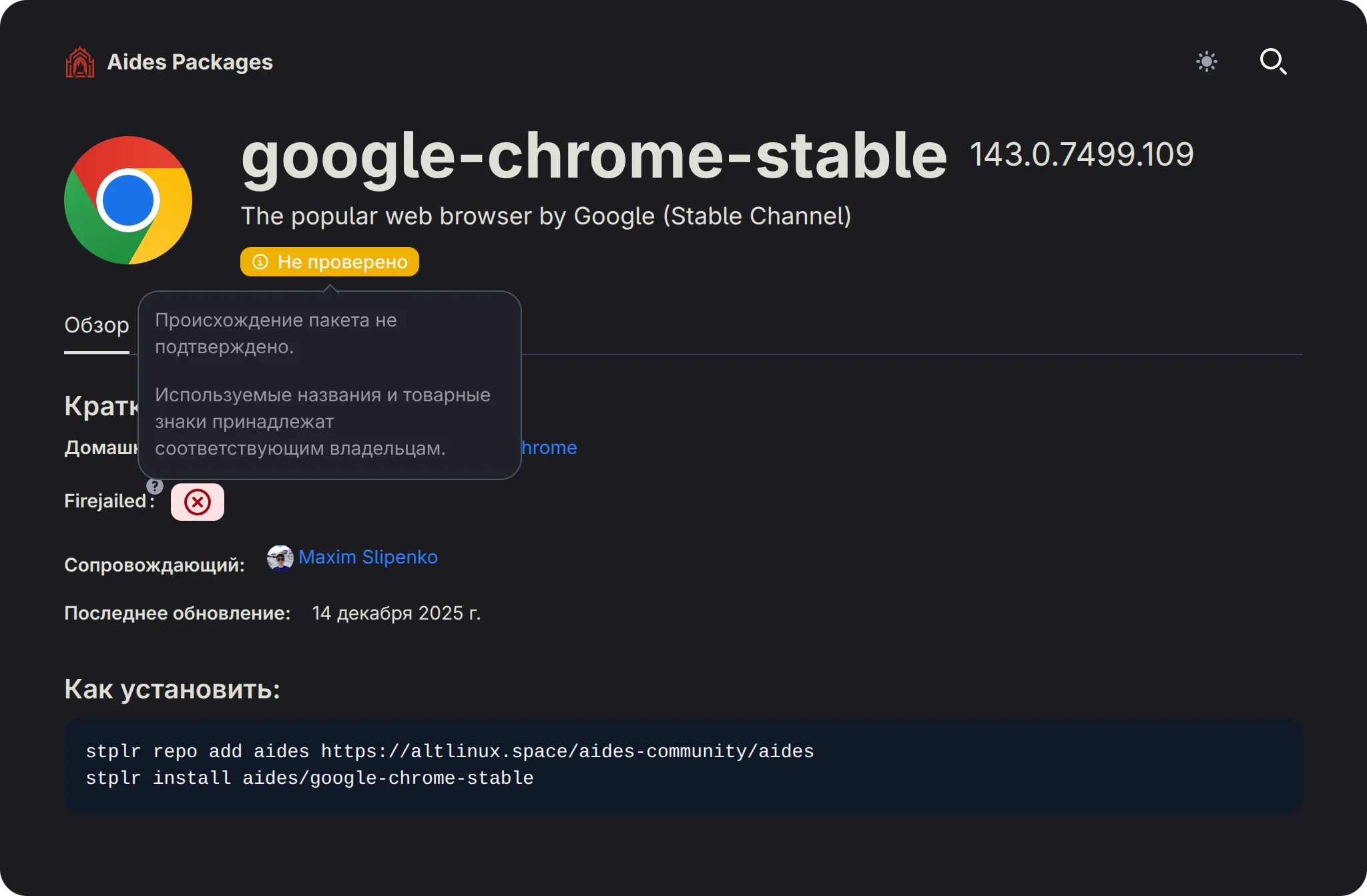 - добавлено уведомление “Не проверено” для пакетов - в информационных и юридических целях;