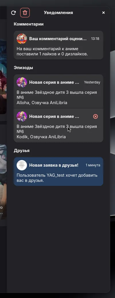 Данное приложение не проверено командой YummyAnime. Разработка ведётся независимо от разработчиков основной платформы, основываясь на открытом API сервиса, энтузиазме и любви к искусству японской анимации.